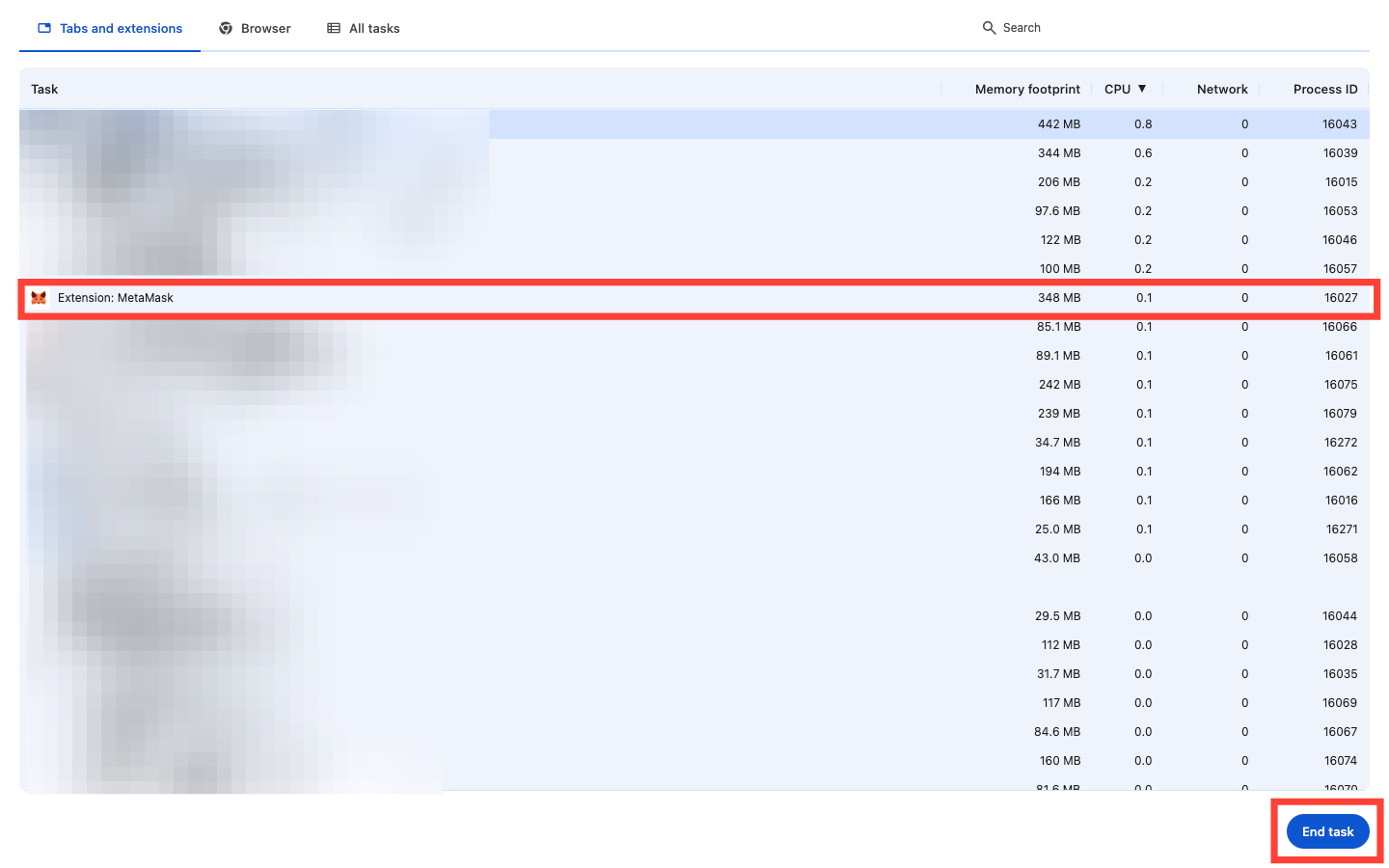 - Press Shift + Esc to open the Chrome Task Manager again.