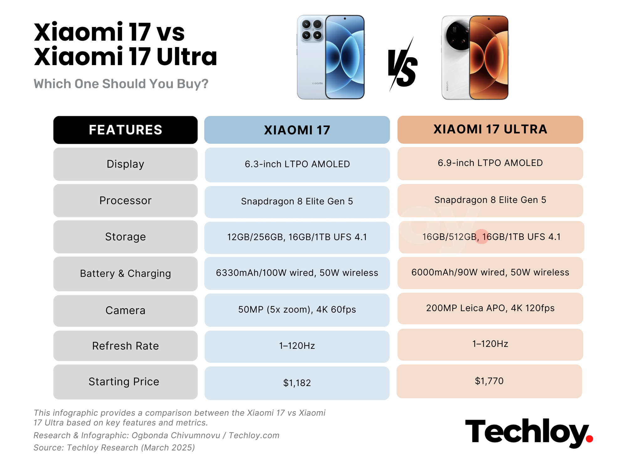 But once you dig into the specs, the story gets more intriguing. The regular Xiaomi 17 actually beats the Ultra in a few surprising areas, while the Ultra focuses heavily on photography and premium materials.