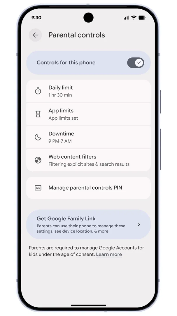 Android 16 QPR2 also adds more control for users who like to personalise their phones. You can change app icon shapes, adjust themes, and even use a darker mode for apps that don't support dark themes. Google is also placing Family Link inside system settings. With the new Parental Controls option, parents can manage screen time and app usage without opening a separate app.