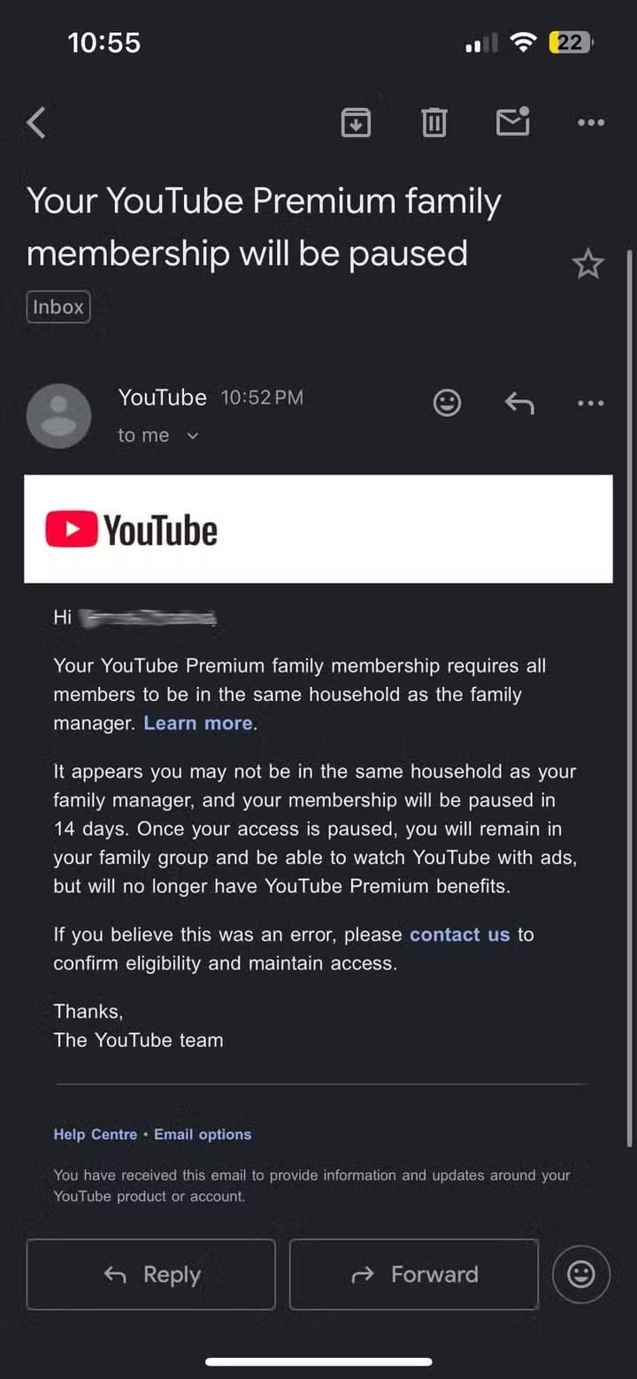 The change isn’t exactly brand new. Technically, YouTube’s family subscription, priced at $22.99 a month for up to five extra members, has always required everyone to live in the same household as the plan manager. The difference is, YouTube never really bothered to enforce that rule until now. Reports from multiple people have said that the platform has started flagging accounts where family members don’t actually share the same address. A handful of users have already received warning emails titled “Your YouTube Premium family membership will be paused,” giving them 14 days before Premium access is revoked.