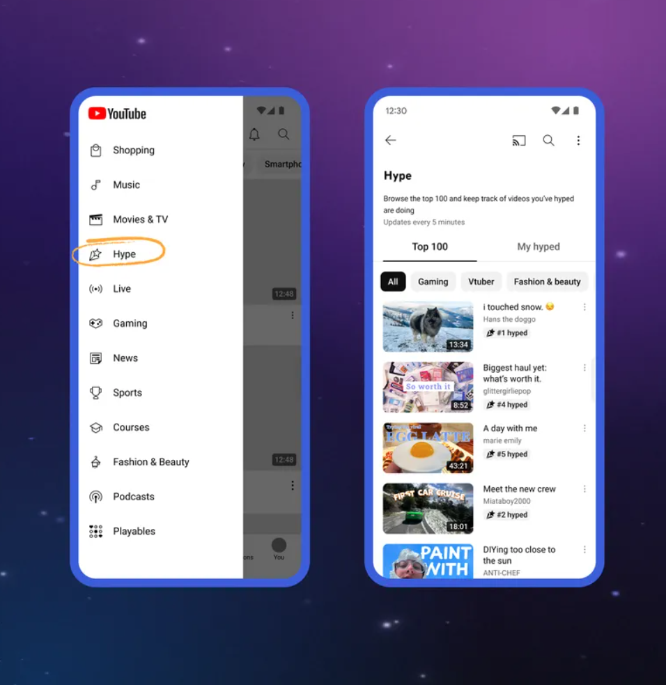 YouTube also adds that fans can filter their feed to only see hyped content, get pinged when a creator they backed is close to the leaderboard, and even collect Hype Star badges for themselves. Soon, there’ll be category-specific leaderboards, gaming, style, and music, and ways to share the fact that you just hyped a video. Meanwhile, creators get a dedicated analytics card in YouTube Studio to track how their hypes are performing.