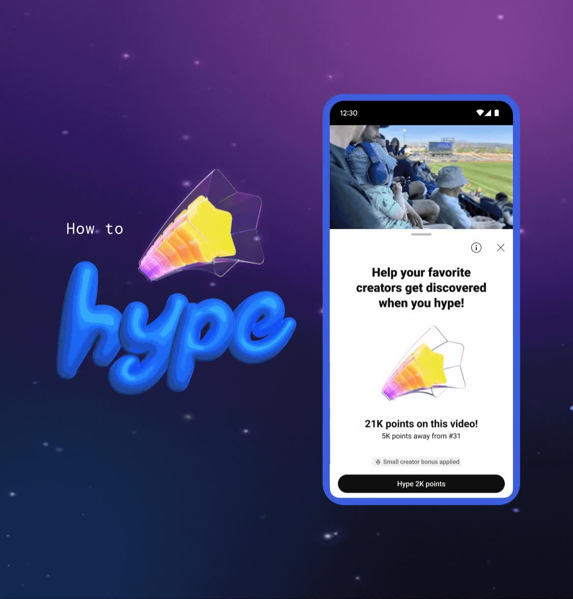 Hype is a pretty much a button that sits right under “like,” designed specifically for channels under 500,000 subscribers. Fans can hype up to three videos a week, and every hype adds points. Rack up enough of them, and a video climbs the new Explore tab leaderboard. To level the playing field, YouTube even weights hypes for smaller channels more heavily.